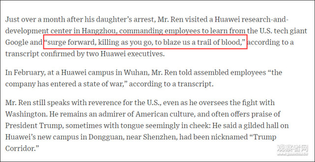任正非一句 杀出一条血路 外媒翻译不及格