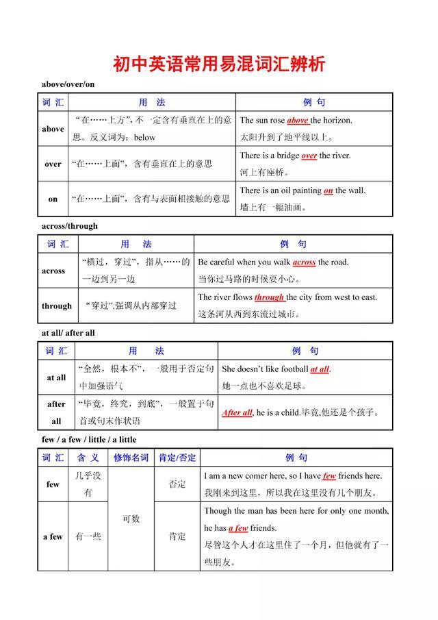 初中英语常用易混词汇辨析大全 人手一份 可下载打印 腾讯新闻